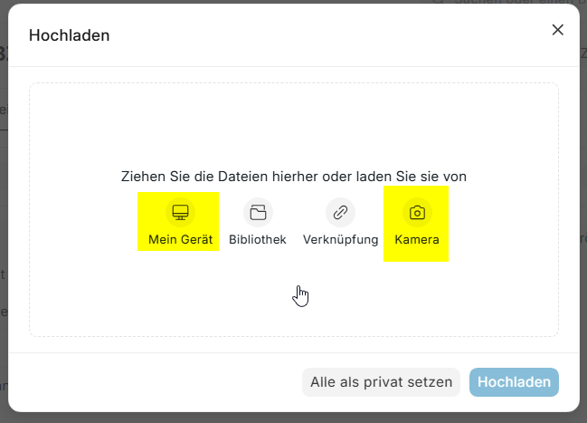 Um eigene Dateien hochzuladen (z. B. Fotos von der Baustelle):