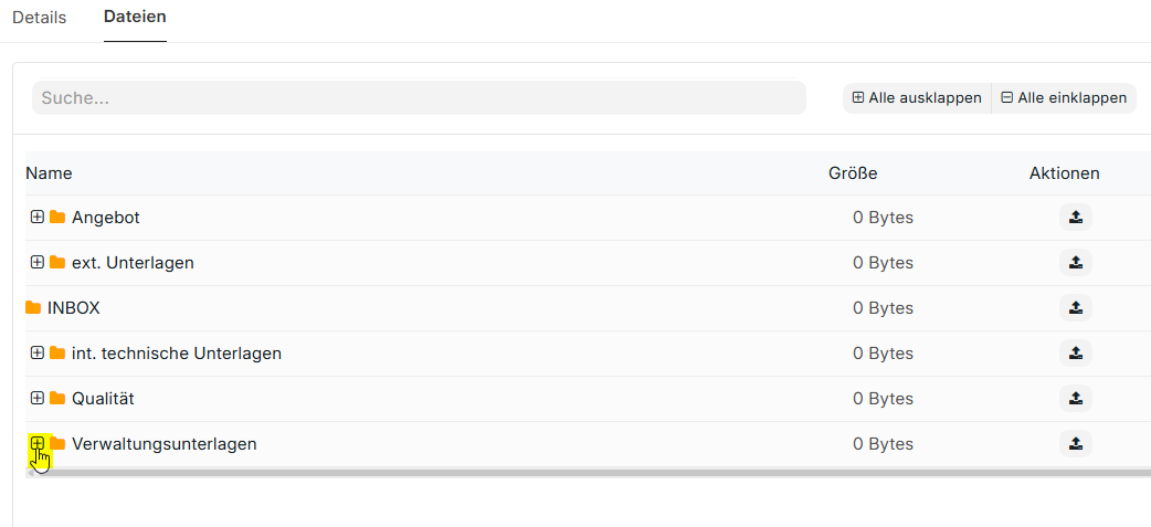 Vor jedem Ordner befindet sich ein Pluszeichen (➕).