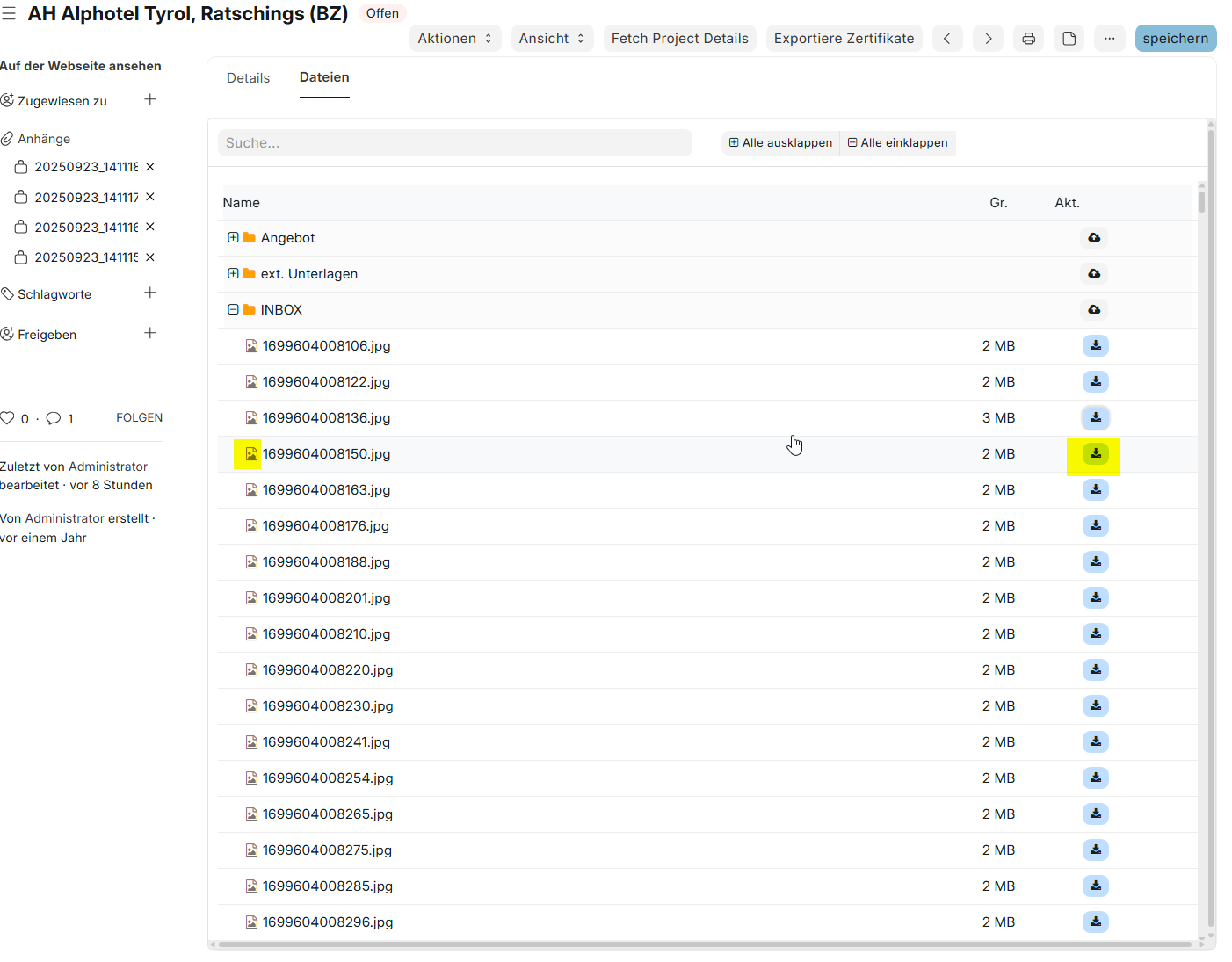 Um eine Datei (z. B. PDF, Plan oder Foto) herunterzuladen: