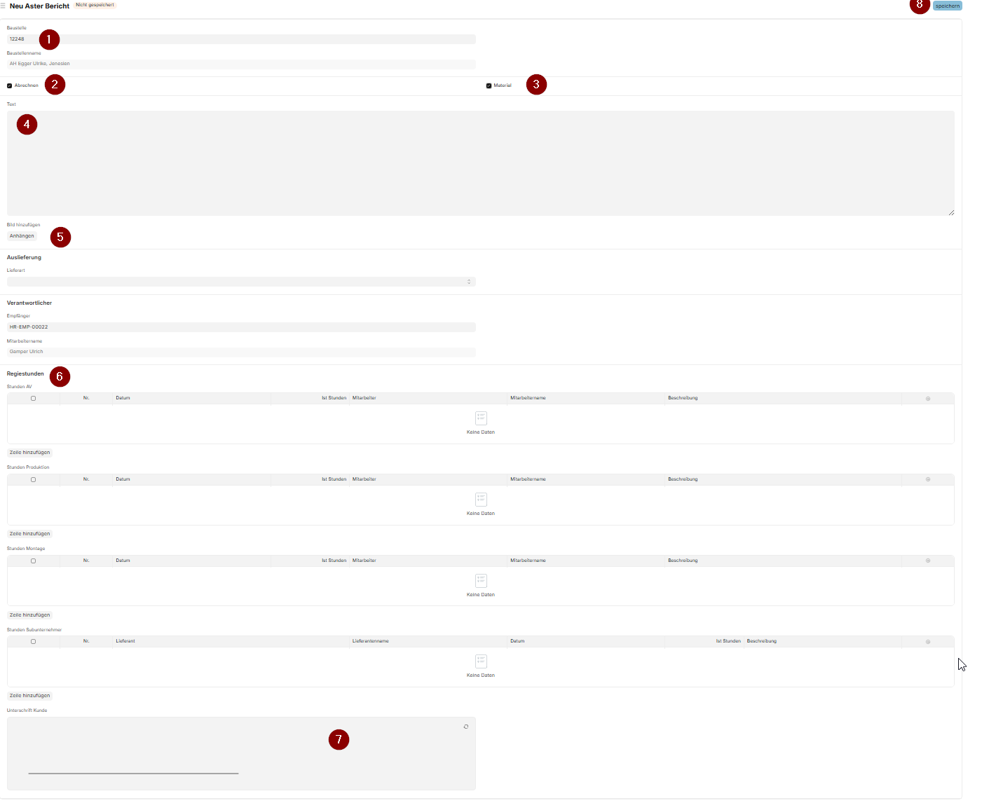 nicole edited 1 month agoDamit beides in einem Bericht erfasst wird, müssen Material und Abrechnen angeklickt werden.