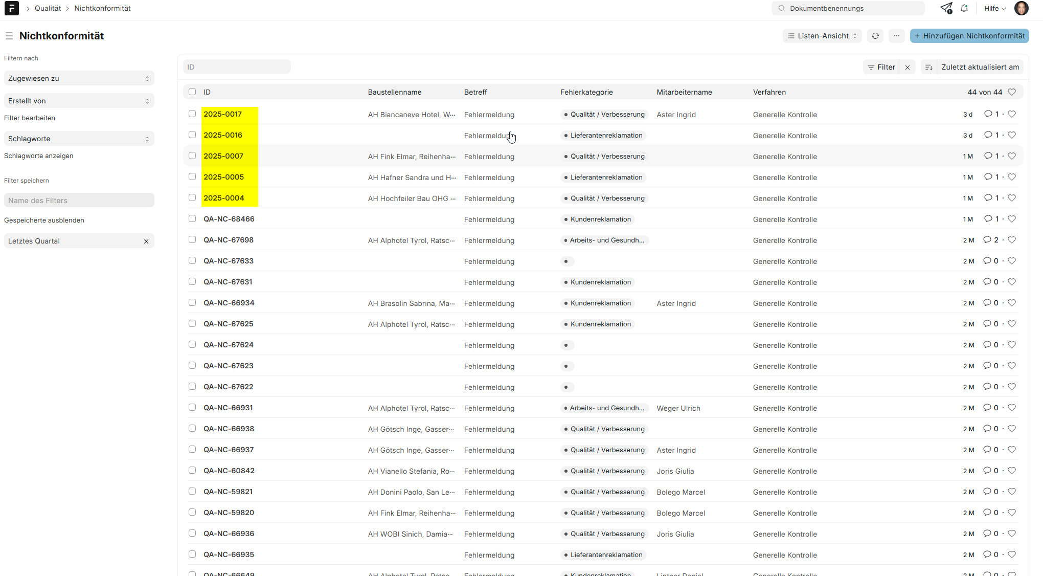 Siehe dafür das Beispiel des Aster Berichts in der Dokumentbenennungsregel Liste