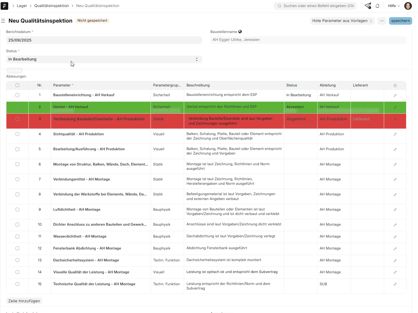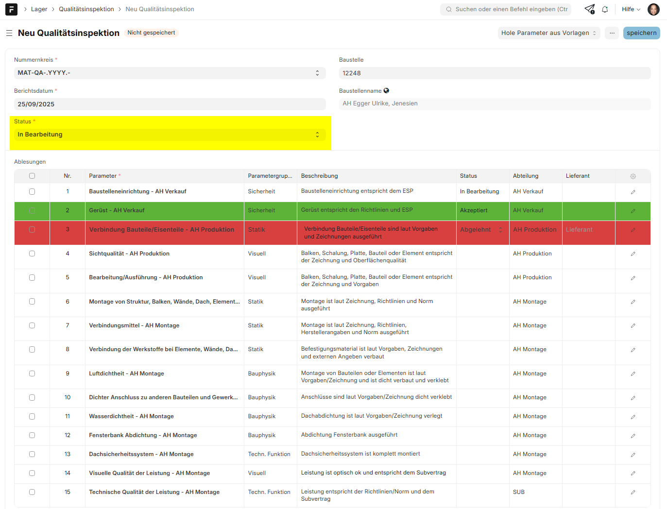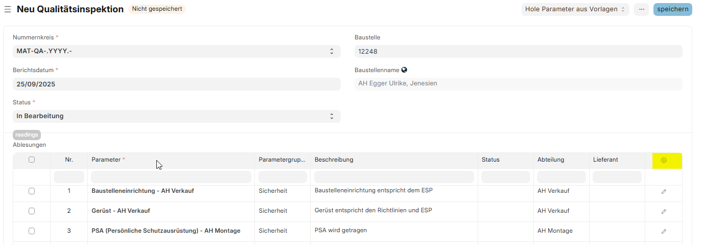 In ERPNext wurde ein Kontrollplan eingerichtet, um die Qualitätskontrolle auf jeder Baustelle sicherzustellen.