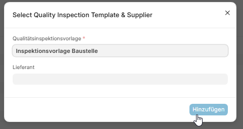 Klicke auf + Hinzufügen Qualitätsinspektion