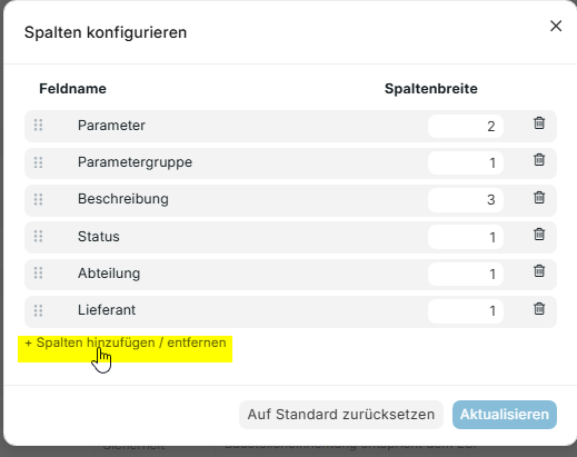 Klickst du darauf und anschließend auf "Hinzufügen", so werden dir die einzelnen Punkte vorn in die Tabelle eingespielt.