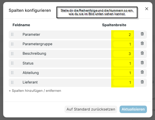 Wichtig zu beachten ist die Einstellung deiner Tabelle, welche du dir bei der ERSTEN Anwendung selbst einstellen musst!
