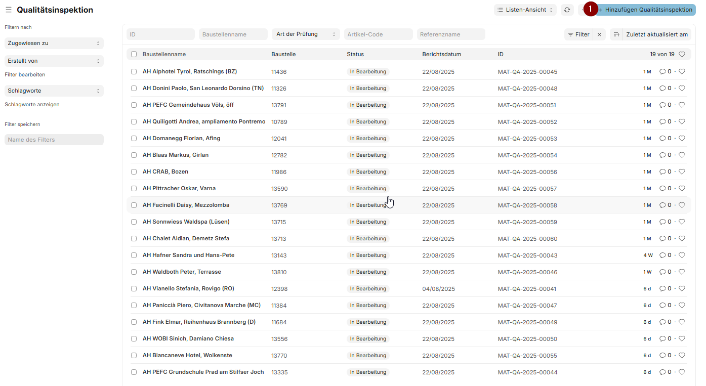 Die Inspektionsvorlage Baustelle ist der allgemeine Kontrollplan pro Baustelle.