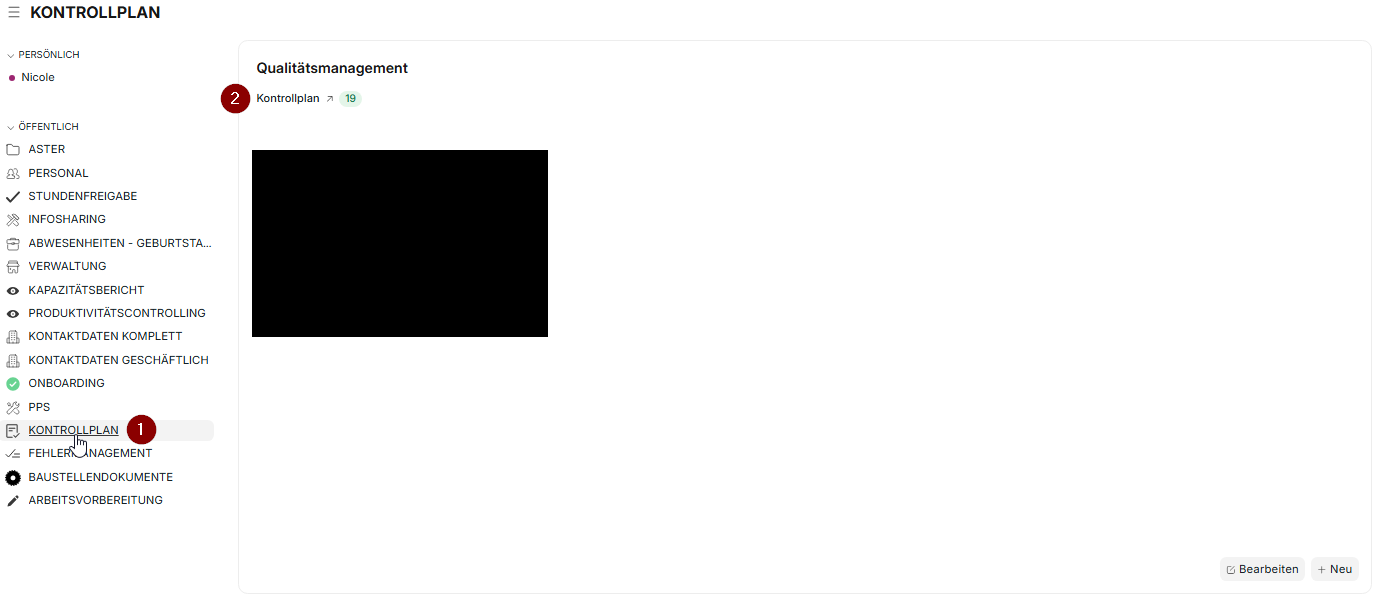 Klicke bei deinen Arbeitsbereichen rechts im ERP auf den Arbeitsbereich "Kontrollplan".