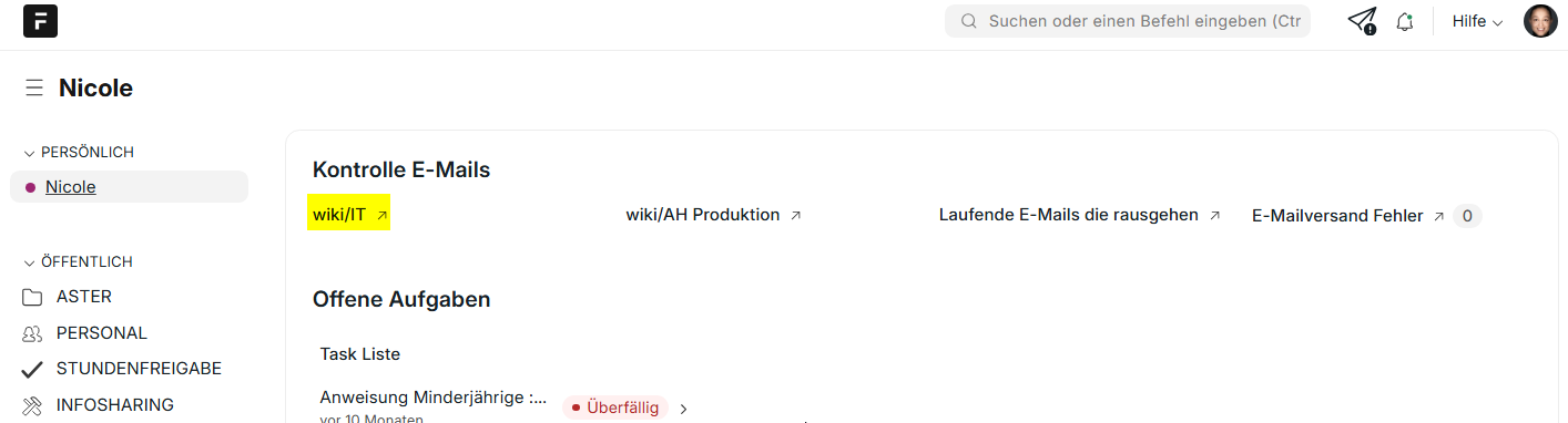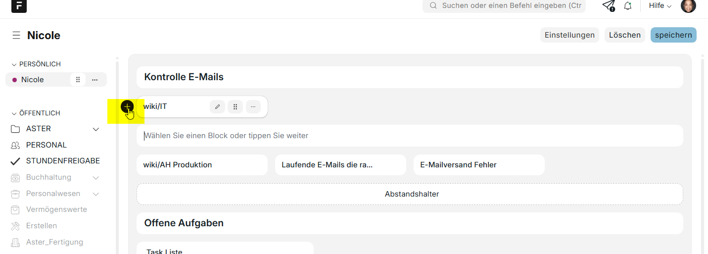 Um dir den Link deines Wiki's nun abzuspeichern gehst du in jenen Arbeitsbereich, in welchem du gern die Verlinkung hättest.