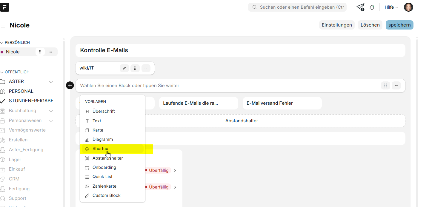 Nun erscheint dir ein +. Klicke auf das + und auf "Shortcut"