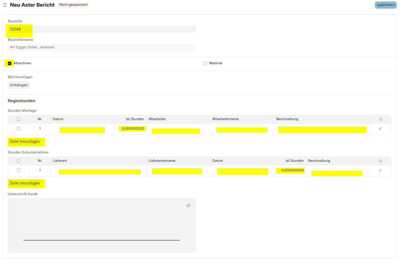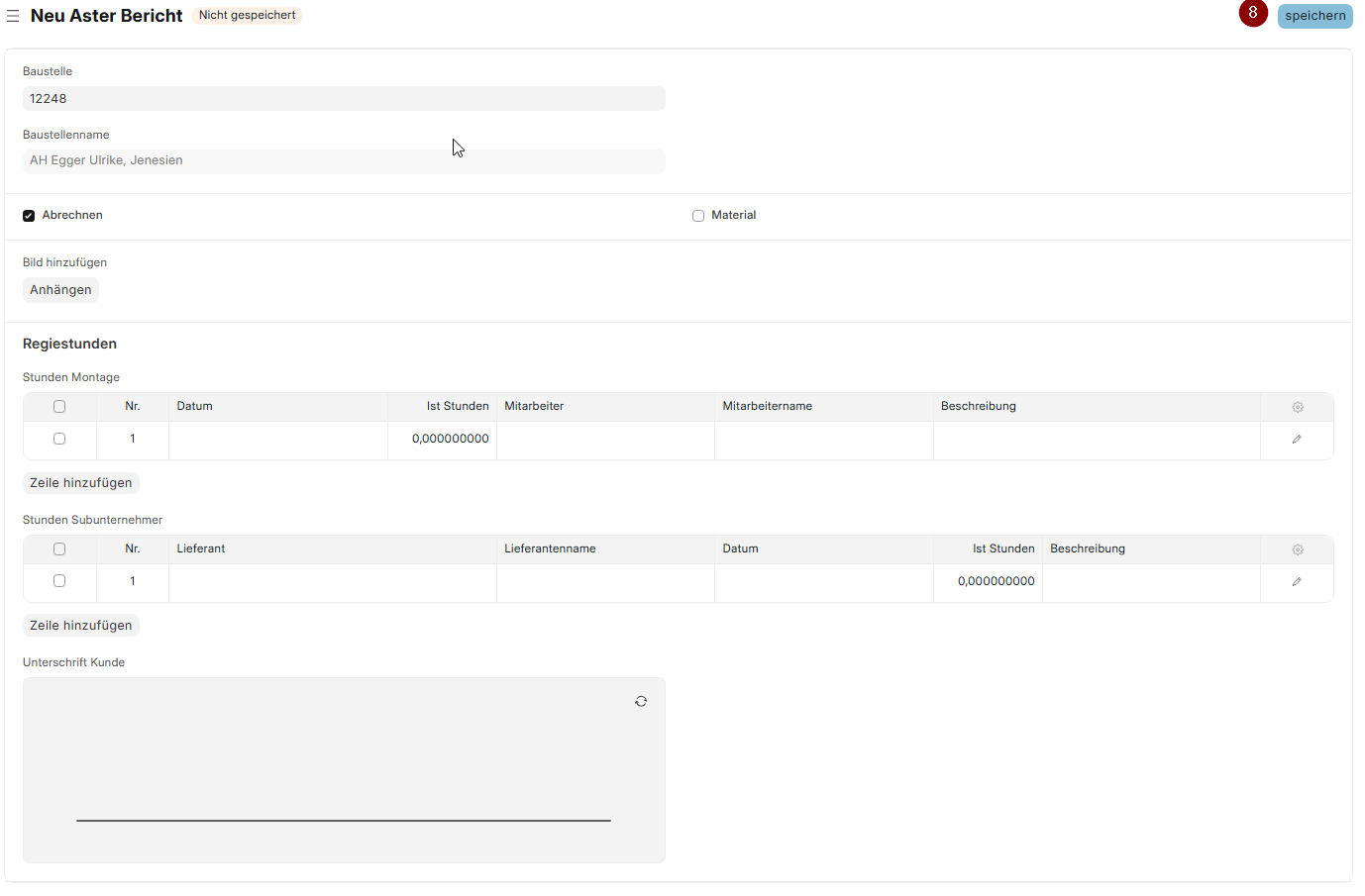 → Im Feld „Baustelle“ die richtige Baustelle eintragen oder auswählen.