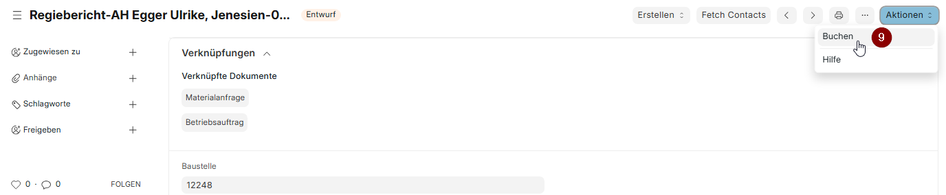 → Nach dem Speichern den Bericht buchen, damit er im System verarbeitet wird.