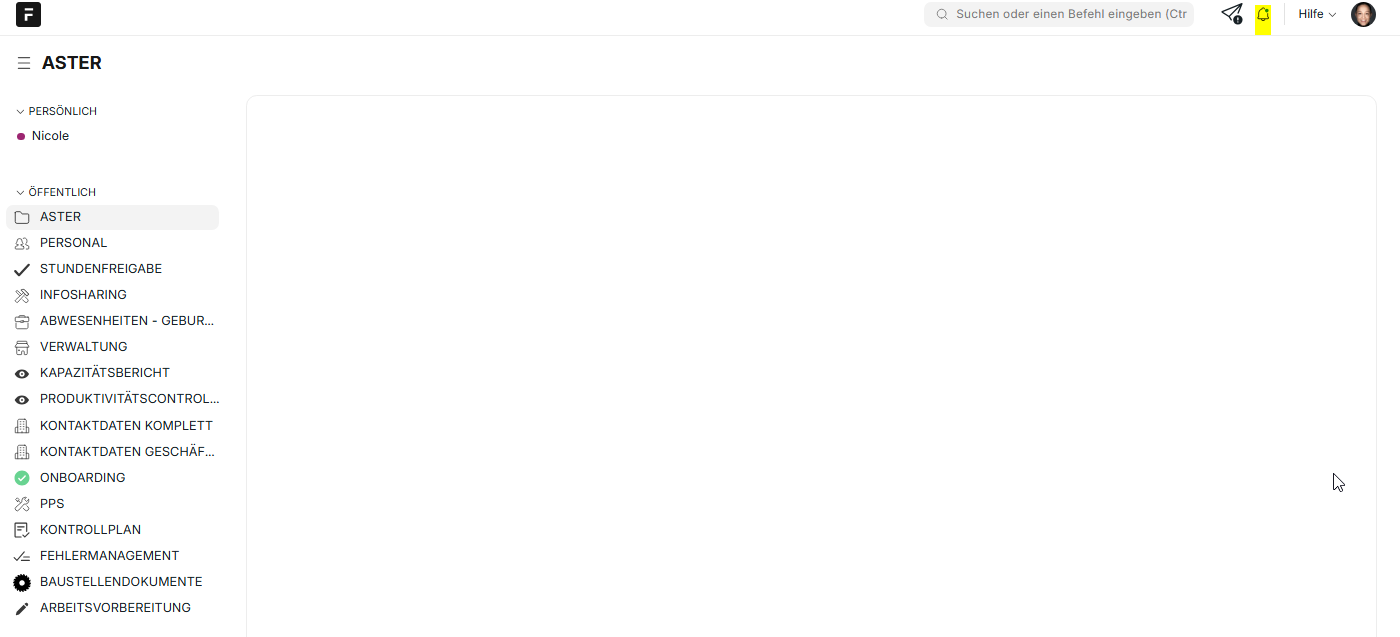 Jeder ERP-Benutzer hat oben im Bildschirm eine Glocke (Benachrichtigungssymbol).