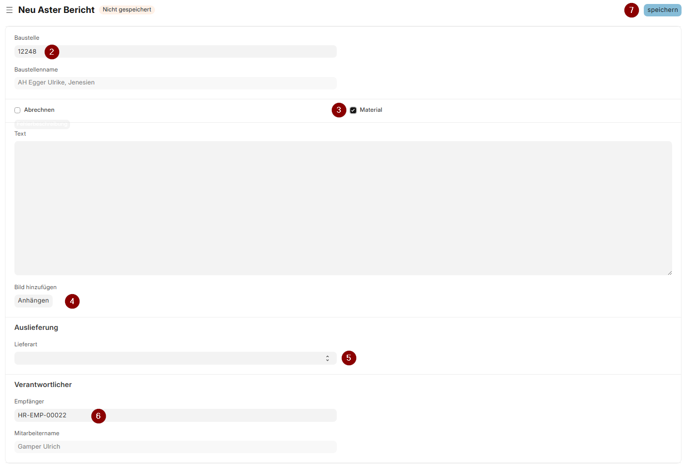 → Im Feld „Baustelle“ die richtige Baustelle eintragen oder auswählen.
